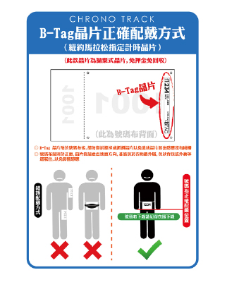 - 在配戴晶片號碼布有任何的問題或不清楚的部分,請至晶片計時單位詢問確認。